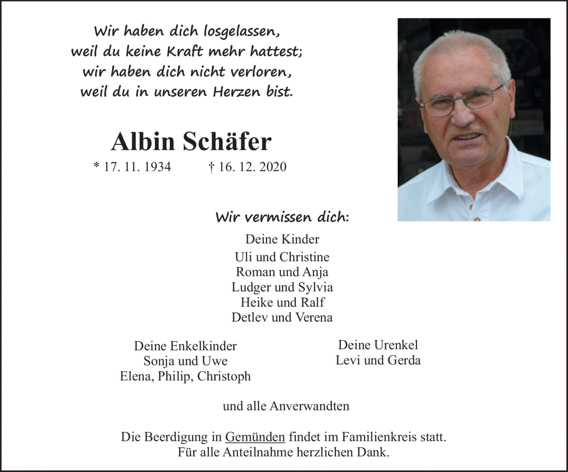 Albin Schäfer verließ uns am 16.12.2020 im Alter von 86 Jahren. Er war Gründungs- und langjähriger Ehrenvorstand und außerdem der Motor des Vereins. Er spielte bis zuletzt in der Fischertrachtenkapelle das Bariton, in der Fishermen’s-Dixieband die Posaune und in der Saitenmusikgruppe den Kontrabass. Alle drei Musikkapellen wurden darüber hinaus von ihm ins Leben gerufen.